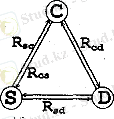 Отношение между знаком и предметом (обозначено как RSD , рядом со стрелкой, направленной от S к D) - это отношение знак - предмет. Множество определений, устанавливающих соответствие между набором знаков и обозначаемыми ими сущностями, то есть отношения типа образуют словарь данной знаковой системы или языка.