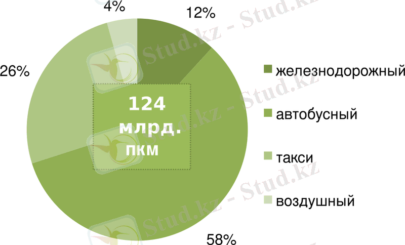 Из данного рисунка видно, что пассажирооборот в основном протекает автобусным видом транспорта, что занимает больше половины, т. е. 58%.