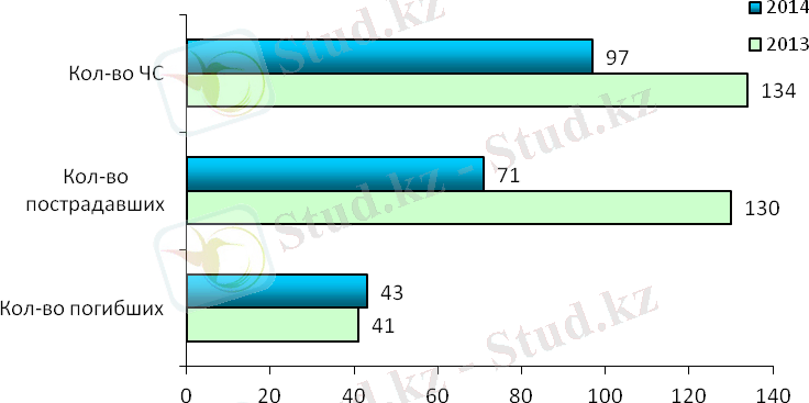Число чрезвычайных ситуаций техногенного характера составляет 90 случаев (93% от общего числа ЧС), из них 54% ( 49 ) составляют бытовые и производственные пожары. По сравнению с аналогичным периодом 2013г. число техногенных чрезвычайных ситуаций уменьшилось на 29 случаев или на 24%. Число пострадавших составило 71 человек (что, на 44% (128) меньше, чем за аналогичный период 2013г. ), погибло 41 человек (что, на 17% (35) больше, чем за аналогичный период 2013г. ) .