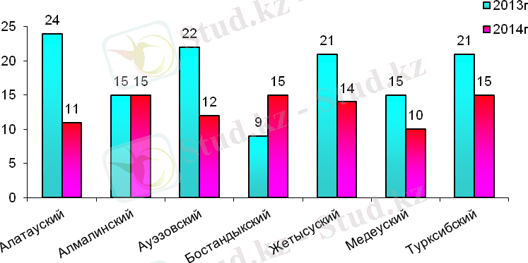 Рост количества чрезвычайных ситуаций по сравнению с аналогичным периодом 2013 года допущен только в Бостандыкском районе на 1, 6 раз.