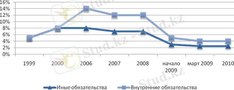 В 2009 году нормативы были достаточно сильно снижены до 2 % и 3% по внутренним и иным обязательствам соответственно.