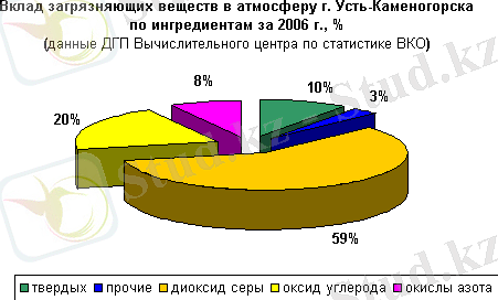 Наибольшую нагрузку от выбросов загрязняющих веществ испытывает атмосфера г. Усть-Каменогорска (выброс загрязняющих веществ составляет 46 %) и атмосфера г. Семипалатинск (19 %) .