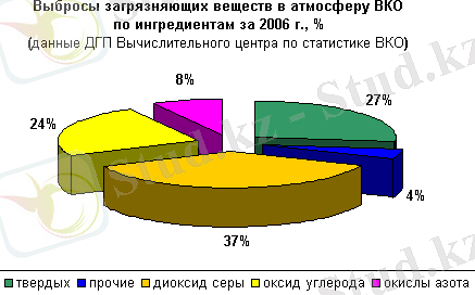 В Восточно-Казахстанской области большое количество отходящих газов выделяется при переработке минерального сырья на металлургических предприятиях. В состав газов входят диоксид серы, оксид углерода, оксиды азота, хлор, тяжелые металлы. Особенно много диоксида серы вырабатывается при переработке сульфидного сырья на предприятиях цветной металлургии. На Казцинке в 2002-2004 годы введена в эксплуатацию установка "Хальдор Топсе", что позволило снизить содержание диоксида серы в атмосфере города с 1, 2 ПДК до 0, 8 ПДК. Источниками парниковых газов и веществ, формирующих кислотные дожди, кроме металлургических предприятий, являются предприятия теплоэнергетики и автомобильный транспорт. Особенно много двуокиси серы образуется при сжигании семипалатинских углей, обладающих повышенным содержанием серы, которая на предприятиях теплоэнергетики никак не утилизируется и поступает в атмосферу.