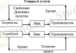 Можно сказать, что сущность банков в аккумуляции капитала, не участвующего в производственном процессе и приложение данного капитала к труду, делу с целью создания новых благ и услуг. Наглядно это можно продемонстрировать в виде рисунка 1.