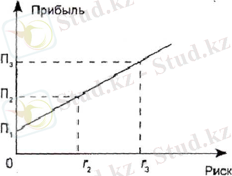 На рисунке 1 показана зависимость прибыли от риска. Можно выбрать решение, содержащее меньше риска (r 1=0), но при этом меньше будет и получаемая прибыль (П1), а при самом высоком риске rЗ прибыль имеет наиболее высокое значение, равное ПЗ.