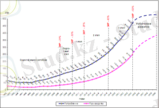 При ЭИР, равном 53 %, обеспечивается выход на траекторию «устойчивого развития» и рост экономики происходит за счет более эффективных, «прорывных» технологий, а не за счет эксплуатации невозобновляемых природных богатств (рисунок 4) .