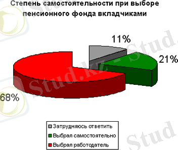 Как показывают результаты опроса компании "КОМКОН-2 Евразия" 1000 вкладчиков в 7 городах и 14 сельских пунктах Казахстана, как правило, пенсионные фонды выбираются не самими вкладчиками, а их работодателями: в семи случаях из десяти (у 68% вкладчиков) выбор пенсионного фонда осуществил работодатель. Самостоятельно выбрал пенсионный фонд лишь каждый пятый вкладчик (21%) . Это, конечно, не означает, что пенсионные фонды были выбраны под давлением работодателя, возможно, вкладчики уступили выбор пенсионного фонда работодателю, не видя разницы, к кому будут поступать его пенсионные отчисления. В связи с этим возникает предположение, что казахстанцы либо одинаково доверяют всем пенсионным фондам, или же одинаково всем не доверяют.