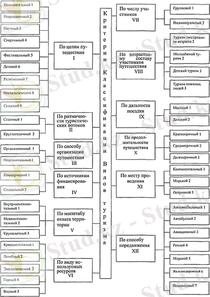 Столь широкий круг предприятий, причастных к индустрии туризма связан с разнообразием видов туризма. Классификация видов туризма, предложенная Н. В. Кабаян [7], представлена на рисунке 1.