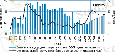 Рисунок 2 - Запасы топлива в странах ОЭСР и цены на нефть4