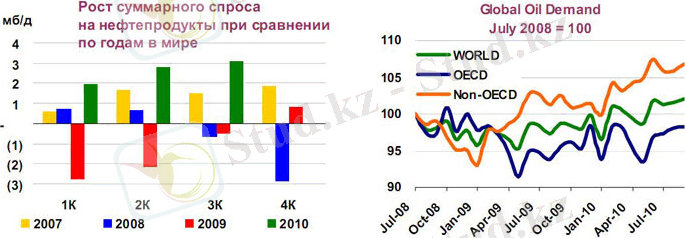 В соответствии с предварительными данными, в третьем квартале 2010 г. при сравнении по годам мировой спрос на нефть увеличился на 3. 1 мб/д. Таким образом, сохраняется тенденция ускорения спроса с начала года (в сравнении с +2. 0 мб/д в первом квартале и +2. 8 мб/д во втором квартале 2010 г. ) . Рост спроса обусловлен, главным образом, действием временных факторов в странах ОЭСР, отмеченных в обзоре за предыдущий месяц. В определенной степени эти факторы были неожиданными и вызвали дальнейшую корректировку в сторону увеличения (0. 5 мб/д) прогноза спроса по регионам в третьем квартале 2010 г. Страны - не ОЭСР также продемонстрировали несколько более высокие показатели спроса по сравнению с ожидаемыми.