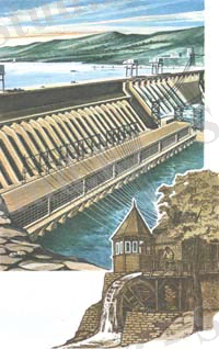 Многие тысячелетия, верно, служит человеку энергия, заключенная в текущей воде. Запасы ее на Земле колоссальны. Недаром некоторые ученые считают, что нашу планету правильнее было бы называть не Земля, а Вода - ведь около трех четвертей поверхности планеты покрыты водой. Огромным аккумулятором энергии служит Мировой океан, поглощающий большую ее часть, поступающую от Солнца. Здесь плещут волны, происходят приливы и отливы, возникают могучие океанские течения. Рождаются могучие реки, несущие огромные массы воды в моря и океаны. Понятно, что человечество в поисках энергии не могло пройти мимо столь гигантских ее запасов. Раньше всего люди научились использовать энергию рек.