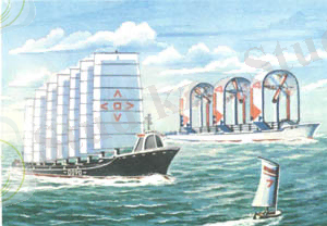 В конструкции двигателя этого судна используется эффект Магнуса - возникновение поперечной силы, действующей на цилиндр, вращающийся в набегающем на него потоке воздуха.