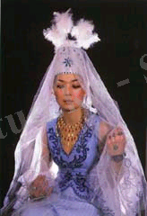 Несколько слов о "саукеле". "Саукеле" - убор невесты. Оно не только головной убор, но и наглядный пример обычаев и традиций, культуры и искусства. Вышивается рубинами, жемчугом, кораллами и прочими драгоценными камнями, которые подчеркивают богатство "саукеле". Шьют из дорогого бархата, велюра и т. д. Края "саукеле" украшают пушниной - норкой, лисицей; вышивают мелким бисером, бахромой, орнаментом; различными мелкими золотыми и серебряными монетами, украшениями. Верх "саукеле" неизменно украшает "уки" (пушистый пучок из перьев филина) . Красота такого убора пленяет взор и является не только украшением невесты, но и возвышает авторитет сватов.