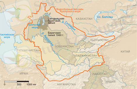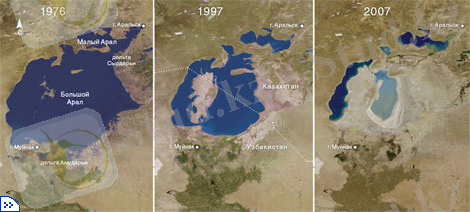 В 1960 г. Аральское море в Центральной Азии было четвертым крупнейшим озером мира, а к 2007 г. оно уменьшилось до 10% от своих прежних размеров. Интенсивный и неэкономный полив пустынных земель вдоль рек Амударья и Сырдарья, питающих Арал, превратил приток в него пресной воды в ручейки.
