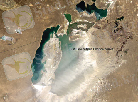 Отступившее море оставило после себя 54 тыс. км 2 сухого морского дна, покрытого солью, а в некоторых местах еще и отложениями из пестицидов и различных других сельскохозяйственных ядохимикатов, смытых когда-то стоками с местных полей. В настоящее время сильные бури разносят соль, пыль и ядохимикаты на расстояние до 500 км. Северные и северо-восточные ветры оказывают неблагоприятное воздействие на расположенную южнее дельту реки Амударья - самую плотно населенную, наиболее экономически и экологически важную часть всего региона. Переносимые по воздуху бикарбонат натрия, хлорид натрия и сульфат натрия уничтожают или замедляют развитие естественной растительности и сельскохозяйственных культур - по горькой иронии, именно орошение полей данных культур довело Аральское море до нынешнего плачевного состояния.