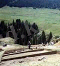Из прошлого до нас дошли наиболее распространенные памятники древности курганы, эти искусственные сооружения и теперь оживляют ландшафт степей и предгорий. В "1970 г. в 50 км от г. Алма-Аты был обнаружен и раскопан курган "Иссык" содержании захоронение так называемого золотого человека. Вождя племен населявших Семиречье во второй половине первого тысячелетия до н. э. Курган достигал высоты 6 метров, а в диаметре был 60 метр. По состоянию костей скелета, обнаруженного в этом кургане, археологи определили примерный возраст древнего человека захороненного там-18 лет. Более 4-х тысяч украшений, выполненных из листового золота, некогда нашитых на одежду, обувь и головной убор, обнаружили в могиле. Также там были найдены золотые перстни, статуэтки, балки, бронзовое и золотое оружие, различные сосуды.