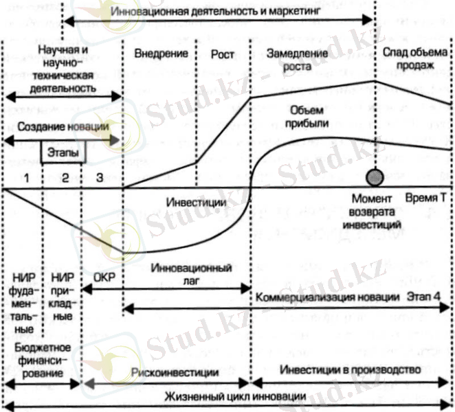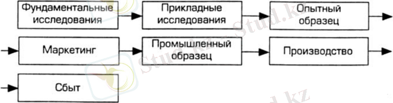 Во-первых, как параллельно-последовательное осуществление научно-исследовательской, научно-технической, инновационной, производственной деятельности и маркетинга;