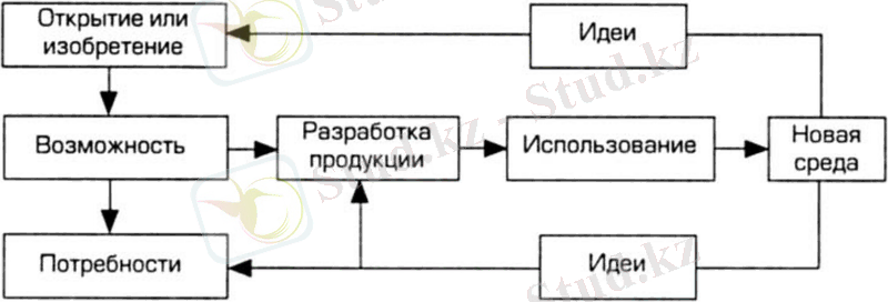 В отличие от НТП инновационный процесс не заканчивается так называемым внедрением, т. е. первым появлением на рынке нового продукта, услуги или доведением до проектной мощности новой технологии. Этот процесс не прерывается и после внедрения, ибо по мере распространения (диффузии) новшество совершенствуется, делается более эффективным, приобретает ранее неизвестные потребительские свойства. Это открывает для него новые области применения и рынки, а следовательно, и новых потребителей. Таким образом, этот процесс направлен на создание требуемых рынком продуктов, технологий или услуг и осуществляется в тесном единстве со средою: его направленность, темпы, цели зависят от социально-экономической среды, в которой он функционирует и развивается.