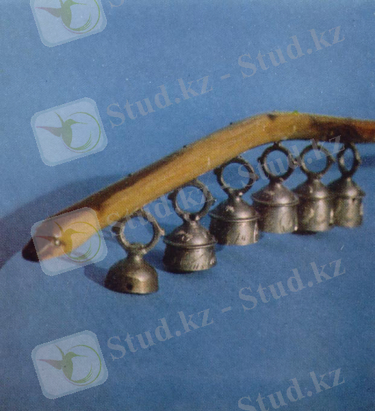 Асатаяк - ударный музыкальный инструмент с шестью настроенными колокольчиками. В прошлом этим инструментом баксы сопровождали свои мелодии. Они изготавливались различной формы, колокольчики были без определенной высоты звучания. Инструмент предан забвению в связи с исчезновением шаманов. Настоящий асатаяк изготовлен мастером А. Аухадиевым в 1972 году (Рис. 8) .
