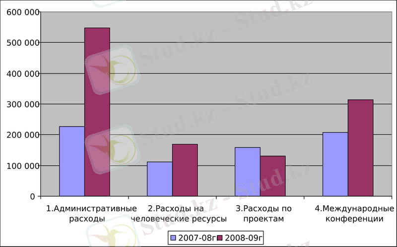По Таблице 2 можно сделать выводы, что как расходы, так и доходы ОО «AIESEC Алматы» значительно увеличились. Это связано с интенсивным развитием организации, на что значительно повлияло открытие отдельного от России Национального Комитета в 2007г., что увеличило количество национальных конференций, международные обязательства организации, в значительной степени увеличило реализацию программы стажировок, более структурировало работу внешних связей и т. д.