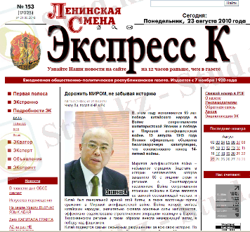 Рисунок 1. 1 Главная страница электронной версии газеты «Экспресс К»