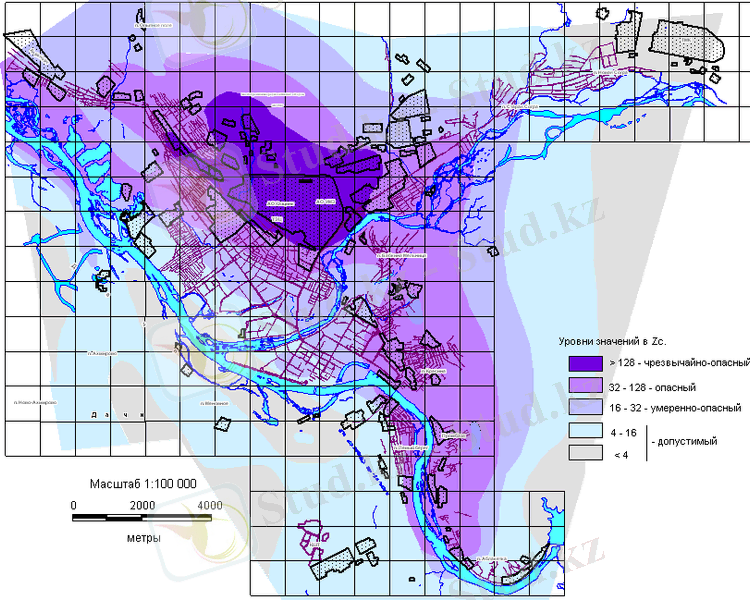 В площадном распределении ТМ намечается четкая зональность, выражающаяся в уменьшении спектра токсикантов и снижении их концентраций по мере удаления от основных источников загрязнения. В морфологическом отношении картографический образ загрязнения подчиняется розе ветров, где преобладают суточные инверсионные потоки, ориентированные вдоль долин Иртыша и Ульбы.
