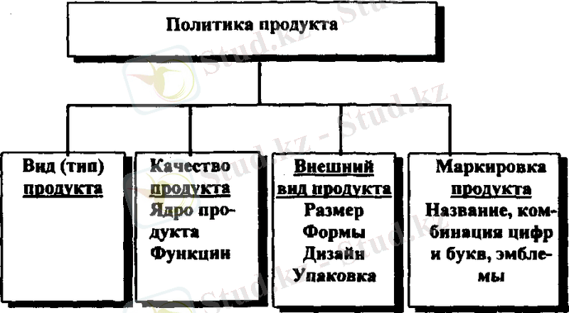 Политика продукта включает вид (тип) продукта, который будет выпускаться фирмой, качество, внешний вид, маркировку и упаковку (рис. 13)