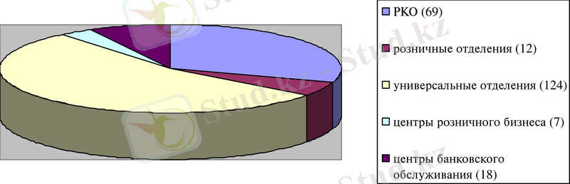 АО "БТА Банк" имеет одну из наиболее развитых филиальных сетей в Республике Казахстан: 22 филиала и 230 отделений, в том числе: универсальные отделения, розничные отделения, центры розничного бизнеса и т. д ( см рисунок 1) .