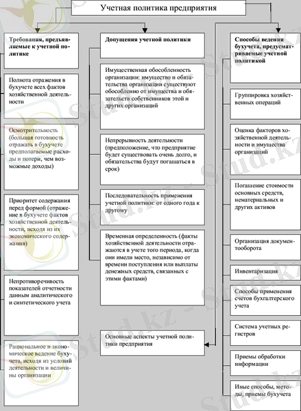 Порядок формирования учетной политики, цель и сфера деятельности, ее раскрытие определены в стандарте бухгалтерского учета №1 «Учетная политика и ее раскрытие», утвержденный национальной комиссией Республики Казахстан по бухгалтерскому учету.