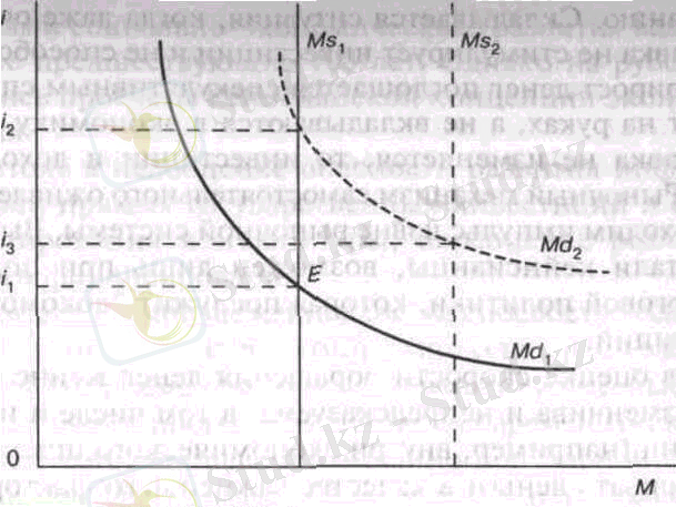 Увеличение предложения денег сдвинет кривую Ms 1 вправо, в положение Ms 2 ;, и соответственно понизит равновесную процентную ставку до значения (i 3 ) .