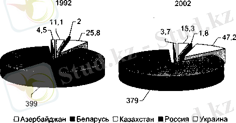 Нефтедобывающая промышленность. В 2002г. по сравнению с 2001г. добыча нефти (включая газо-вый конденсат) увеличилась в Казахстане - на 18%, России - на 9%, Азербайджане на 3%, Украине - на 0, 6%; снизилась - в Грузии - на 25%, Таджикистане - на 0, 6% (рис. 1), (см. Приложение, табл. 3) .
