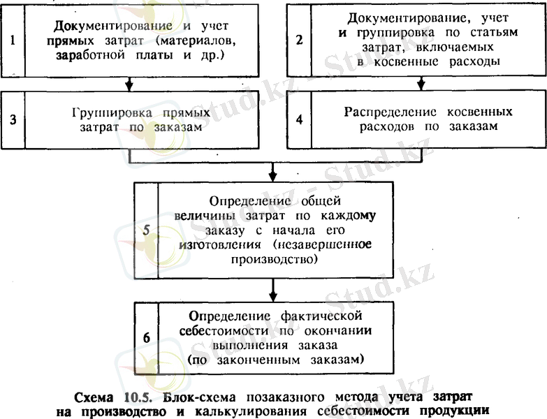 Покажем последовательность учета операций при позаказном методе на блок-схеме 10. 5.