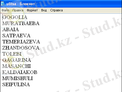 73 Связывание файловой переменной f с файлом ulitsa. txt