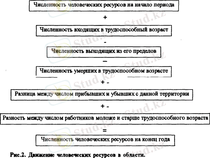 - выбытие людей за пределы рабочего возраста влияет только на численность человеческих ресурсов, никак не зат-рагивая при этом численность населения.