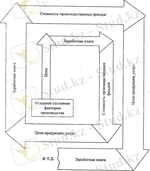 В реальной экономической жизни эти виды и сопутствующие им следствия тесно переплетаются, вазимодополняют себя, вызывая так называемую инфляционную спираль, когда повышение издержек в результате роста цен на потребляемые компоненты производства и оплату труда ведет к повышению стоимости выпускаемой продукции, потребление которой требует дополнительного роста зарплаты и материальных издержек в смежных секторах экономики, и так до бесконечности (см. схему 2) .