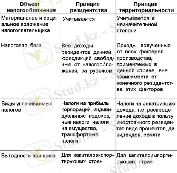 Согласно принципу резидентства все доходы юридического лица, полученные во всех юридических операций, облагаются подоходными налогами в стране, в которой оно (юридические лицо) является резидентом