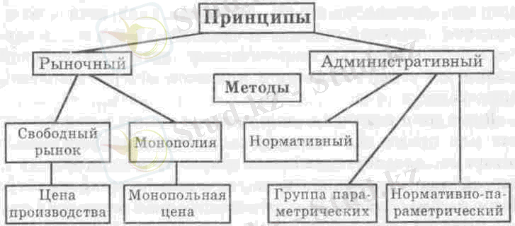 Методология ценообразования основывается на использо-вании множества методов и только двух принципов ценооб-разования рыночного и административного. Рыночное це-нообразование может осуществляться либо в условиях кон-куренции, либо в условиях действия монополии. От выбран-ного принципа будет зависеть метод ценообразования.