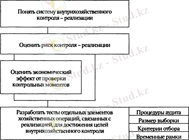 В мировой практике аудита, существует практика применения принципов аудита цикла реализации и получения выручки, которая сжато приведена на рисунке 1. Немаловажным на первой стадии аудита понять саму систему внутрихозяйственного контроля реализации готовой продукции, оценить степень риска, проработать конкретные методы проверки.