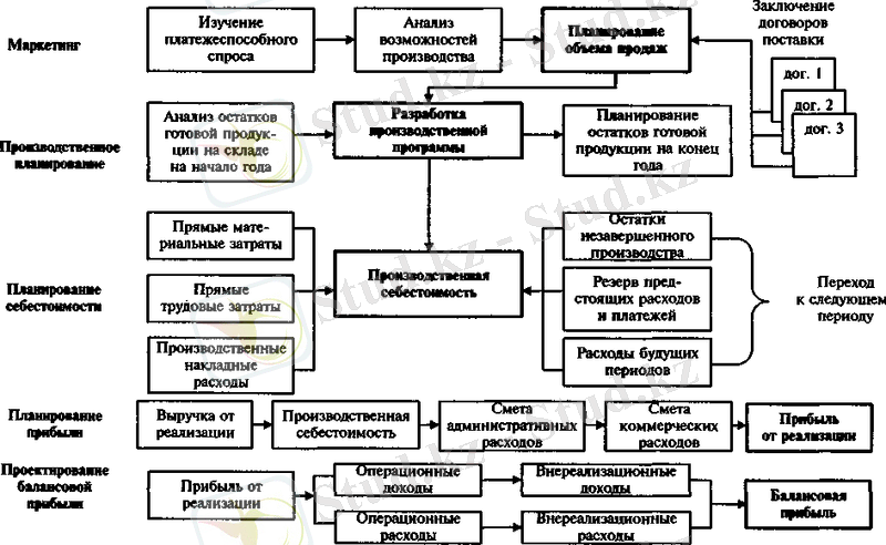 Объектом планирования являются элементы балансовой прибыли, в первую очередь, прибыль от реализации продукции (товаров), выполнения работ, оказания услуг. Основой расчетов прибыли служит прогнозируемый объем продаж. Это связано с тем, что производственная программа и запасы зависят от объема продаж. Однако этот объем может ограничиваться имеющимися производственными мощностями. В таком случае именно они являются отправной точкой для планирования. После определения объема продаж разрабатывается производственная программа на основе заключенных контрактов.