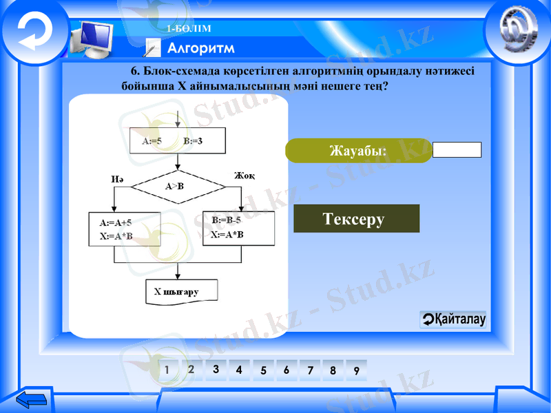 Ә) Блок-схемада көрсетілген алгоритмнің орындалу нәтижесі бойынша Х айнымалысының мәні қаншаға тең?