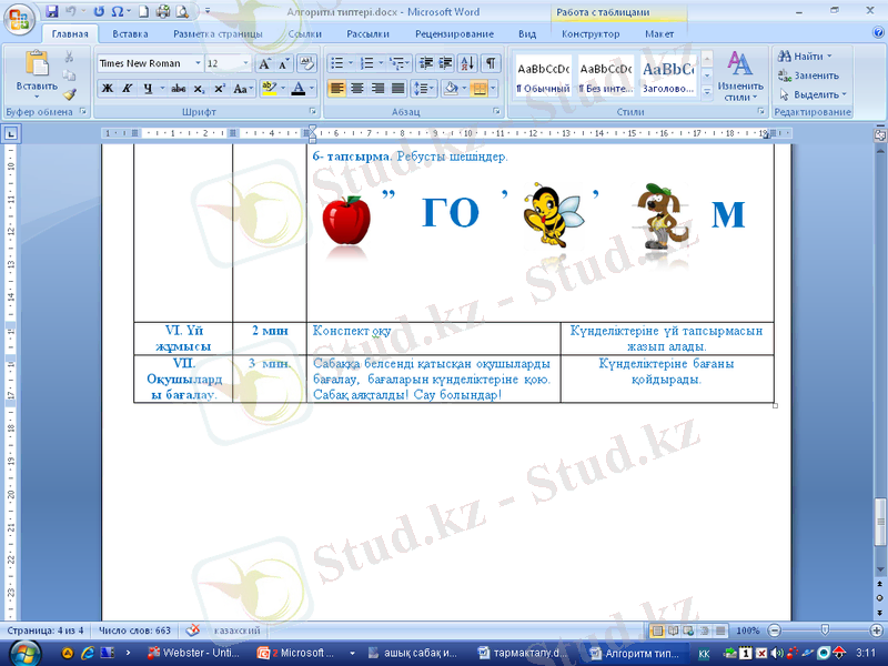 Сабақтың көрнекілігі : Таратпа қағаздар, бағалау парағы, компьютер, экран, проектор, электрондық оқулық, сабақтың өту жоспары слайд түрінде дайындалған.
