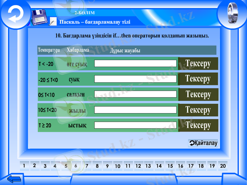 А) Бағдарлама үзіндісін if …then операторын қолданып орындау