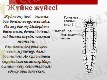 Жүйке жүйесі басында жүйке жасушаларының жиынтығын түзіп, екі желілі жүйке құрттың денесін құйрығына дейін бойлай созылады.