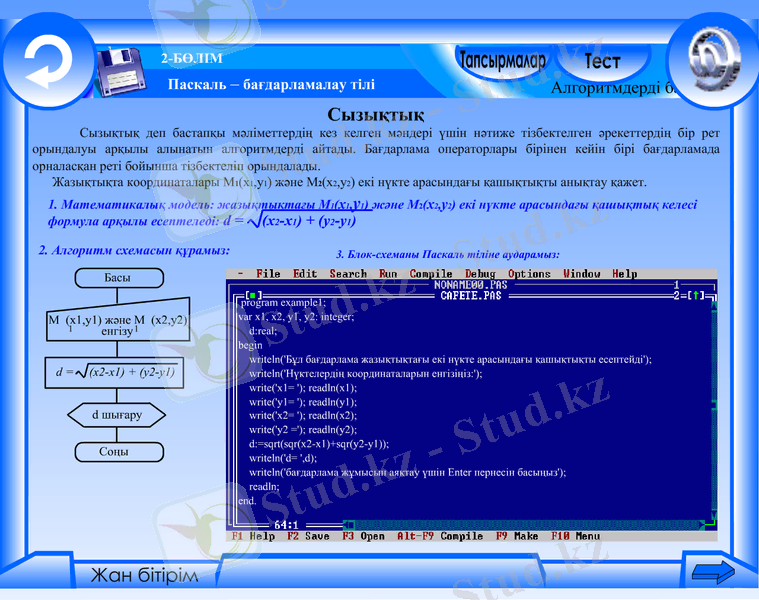 Сабақтың тақырыбы: Сызықтық алгоритмдерді программалау.