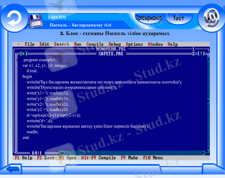 - Айнымалыларды сипаттайтын программаның бөлігі?(Var) ;