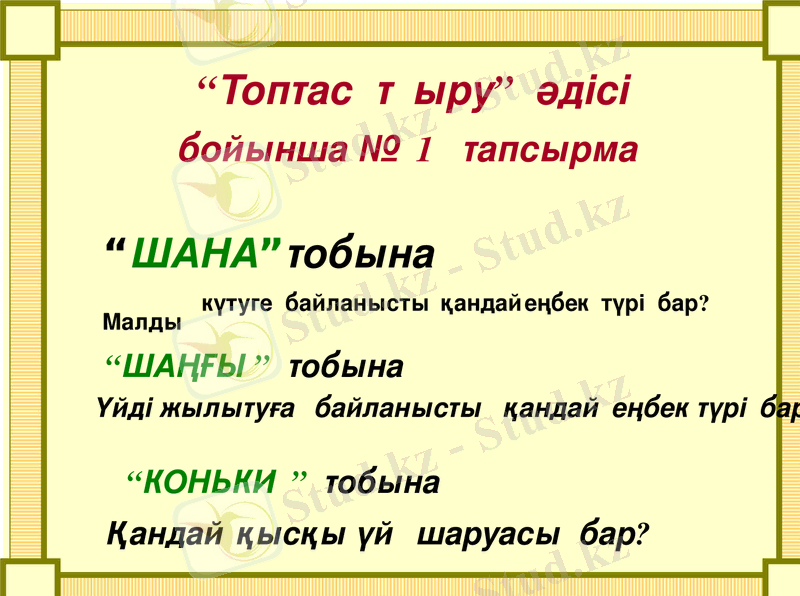 “ШАҢҒЫ” тобы «Ойлан, жұптас, талқыла» әдісі