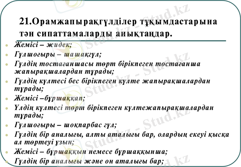 I топ. Анықтау. Раушангүлді өсімдіктердің құрылысының ерекшеліктері