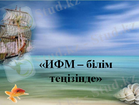 М: Оқушылар, бізде бүгін ерекше сабақ болғалы тұр. Осы аптадан бастап, мектебімізде Информатика, Математика, Физика пәндерінің «ИФМ - білім теңізі» тақырыбында апталық өтеді. Осыған сендердің қосқан үлестерің: осы апталыққа жақсы атсалысу, ребустар мен сөзжұмбақтарды шешу және т. б. іс-шараларға араласу. Апталыққа қатысуларың осы бүгінгі ашық сабағымыздан басталмақ. Бүгінгі сабақта көңілді тақпақ арқылы бастайық.