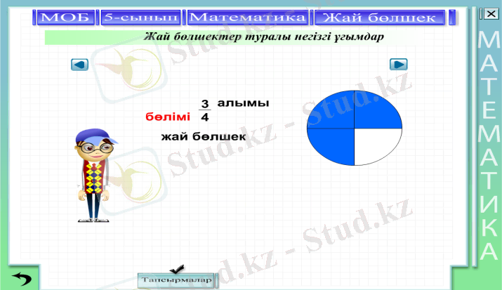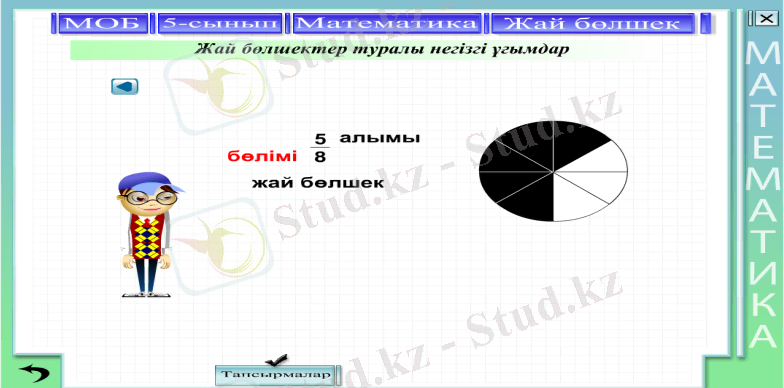 5-сыныпқа арналған сабақ жоспары: Бөлшек ұғымы, бөлшектің алымы мен бөлімі, бөлшек түрлері және жазылуы
