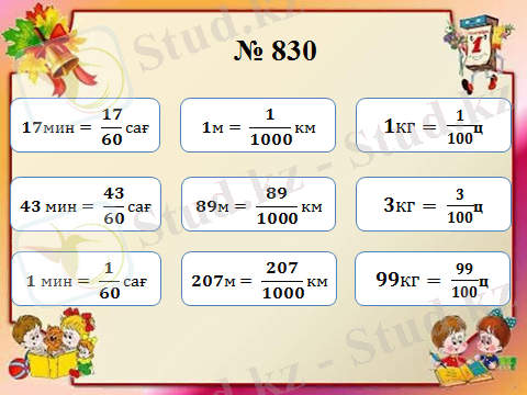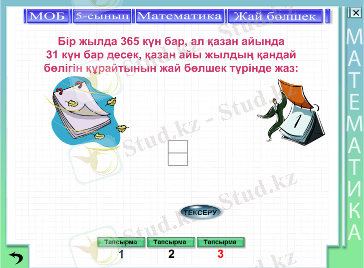 Сабақтың мақсаты: бөлшекті жазып үйрену.